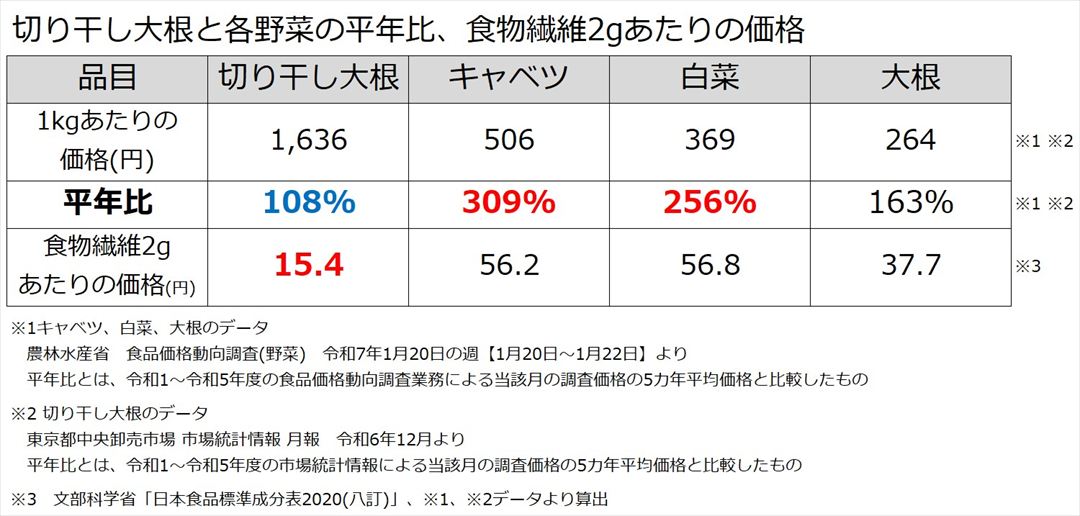 表4‗切り干し大根と各野菜の平年比_食物繊維2gあたりの価格_R