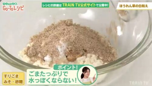 旬のほうれん草の甘味引き立つ、白和え衣の完成です!