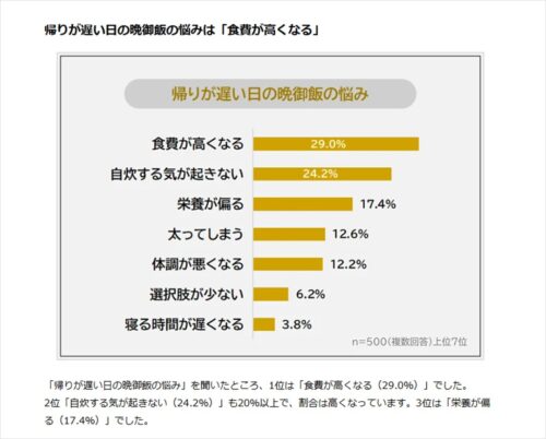 【帰りが遅い日の晩御飯はどうしてる?】社会人500人アンケート調査(PR TIMES)